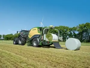 The powerful KRONE CombiPack HDP round baler is setting new standards when it comes to throughput. The high baling density and consistently uniform bale shape ensure continuously efficient operation over long periods of time. The innovative short cut cutting system enables the cutting length to be adjusted accurately, thus ensuring the optimum length is always achieved. Innovative operation, automated processes and maximum power ensure the efficiency and precision of the system. In addition, the quick changeover from net to film make it particularly convenient and versatile for processing all types of crops.