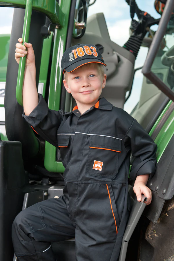Cool and durable work overalls for little adventurers! In chic black with eye-catching orange accents and the AMAZONE logo on the chest. Perfectly equipped with many practical pockets for small tools or finds. The reflective stripes on the chest, back and trouser legs ensure that you are always well seen – whether playing or helping out on the farm.