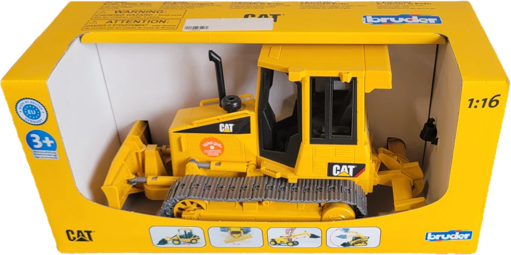 In typical Bruder style, the tracked dozer recreates realism; it features a pivoting and tilting blade for all clearing and grading work, and the multi-tooth ripper allows for soil loosening even in the most difficult terrain. The real single-link chain gives the vehicle excellent running characteristics. The tracked dozer is another vehicle in the highly successful Bruder “Small Vehicles” range.