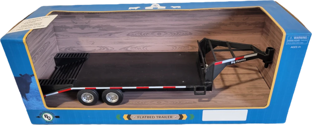 GOOSENECK CONNECTOR: Elevate your farm play with the Big Country Toys Flatbed Trailer, featuring a practical gooseneck hitch for easy attachment to a variety of farm toys and toy trucks. REALISTIC TRANSPORT: Kids can explore the excitement of vehicle transportation, enhancing their imaginative farm scenarios with this detailed and true-to-life flatbed trailer. DURABLE CONSTRUCTION: Crafted for durability, this flatbed trailer is built to withstand the demands of playtime, ensuring long-lasting fun for young agricultural enthusiasts. EXPAND YOUR FARM SET: Add a new dimension to your farm toy collection by incorporating this flatbed trailer, encouraging creative play, and expanding the possibilities of your miniature farming world. COMPATIBLE AND FUN: Designed as a fun add-on for farm toys and toy trucks, this flatbed trailer is compatible with various playsets, making it an ideal accessory to enhance the enjoyment of farm-themed adventures.