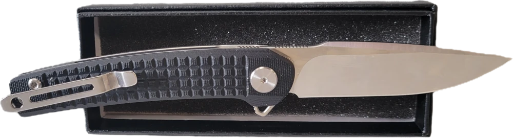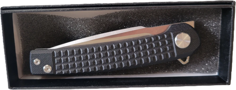 A folding knife with a pocket clip and the Deutz-Fahr logo