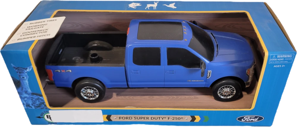 1:20 scale, replica Ford Super Duty F-250 comes complete with a gooseneck connector and bumper hitch to fit with our full line of farm, ranch, and outdoor trailers. The back tailgate can fold down just like a real truck. This Ford truck is the perfect addition to any play farm scene. REALISTIC REPLICA OF YOUR FAVORITE TRUCK: Our trucks are carefully crafted to include realistic details of the real-life trucks. GOOSENECK AND BUMPER TRAILER CONNECTORS: This truck has a gooseneck trailer hitch that will fit any of our Big Country Toys trailers for maximum mix-and-matching capabilities! Our trucks also feature working tailgates and rubber side mirrors to prevent them from breaking. 1:20 SCALE COMPATIBILITY: All of our 1:20 scale vehicles, playsets, and animals are compatible and interchangeable to build your own custom farm scene! SAFE & DURABLE FOR AGES 3+: Our trucks are made of heavy duty yet lightweight plastic that can withstand endless playtime for young children. We ensure our replica truck toys not only look authentic and lifelike, but they are also strong and stable for years to come.