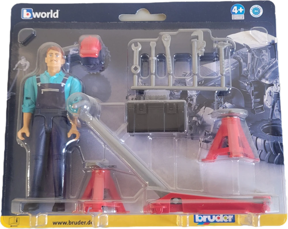 The bworld series from Bruder includes numerous figures, buildings and small vehicles and is therefore the ideal addition to the large vehicle range. The combination of vehicles and figures allows particularly realistic theme worlds to be recreated on a scale of 1:16. The role play is almost limitless. The figures are available in numerous versions and can differ based on the following characteristics: gender, skin color, clothing style, clothing color, hair color, hairstyle, footwear, facial expressions and face and body printing.