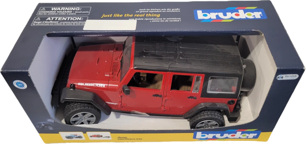 There is enough space for four Bruder bworld figures to fit inside the vehicle. As an alternative to the full occupancy, the rear seat bench can be removed, allowing accessories to be added to the cargo area using the Bruder standard connectors. The additional steering column allows for easy steering through the roof hatch and can be stowed in the vehicle floor when not in use. The axles feature suspension as is typical for off-road vehicles, and the profiled wheels have rims with an attractive SUV look. The front interface, to which the optional cable winch can be attached, and the removable trailer coupling mean there are no limits to the expansion possibilities in the Bruder world.