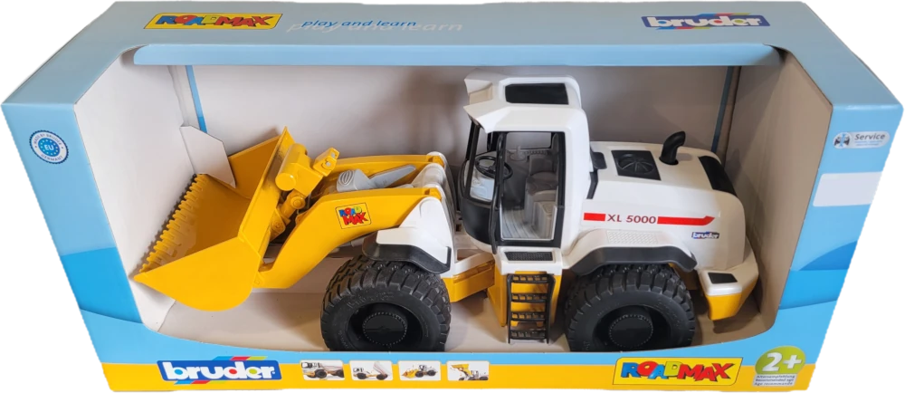 The BRUDER construction vehicles themed world is extremely popular as the toy vehicles have been finished beautifully and feature comprehensive functions. The new ROADMAX wheel loader has now been added to this successful segment. This vehicle with clever BRUDER design convinces with great functions and simple handling. The central handle can lift and lower the entire loading arm and move the bucket. Thanks to the large tread tires and articulated steering this new wheel loader also cuts a great shape in any sandpit. This toy is a real hit even for younger children as we can recommend this item from the age of 2.